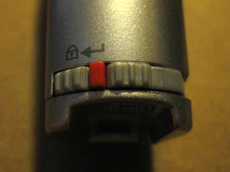 Like more recent Cateye rear flasher lights, this newer headlamp features “hold to turn off†switch logic. The first touch of the switch turns the light on. Subsequent switch activation toggles the light through its three modes – high, low, flash. Holding the switch turns the light off. The light will resume in the last mode when reactivated. The previous headlamp had “flash, constant on, off†switch logic. The magnetic switch does not penetrate the housing, so with the bezel o-ring, this light is waterproof and immesible in water. The housing is JIS rated to 50-meters – much deeper than normal cycling would regularly entail. The switch is a momentary rotational switch that turns clockwise (right) with a spring return. There is a red button on the switch that is not found on the previous models. Pushing this button allows the switch to be turned further counterclockwise to lock it out. This is a definite improvement – the previous light with a non-locking switch was prone to accidentally turning on while in the gear bag. The selective lock still allows the switch to be used easily when unlocked, but will keep the light off when not in use, or prevent accidental mode changing when in use.
