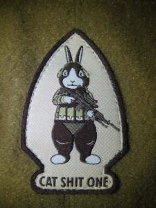 Here’s a patch of Botasky from Cat Shit One 80.  Mojo Dave says Perkins is arriving next week! The woven detail is nice. Like the unit patch, I’m not sure if this one passes copyright muster…